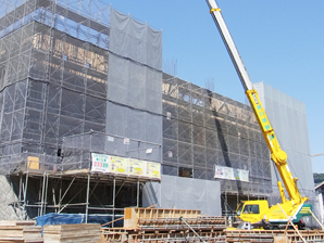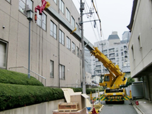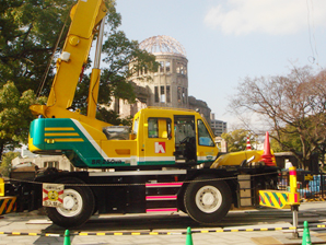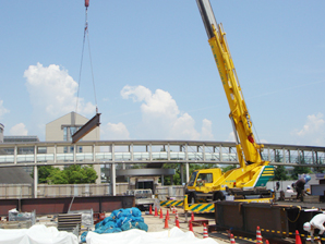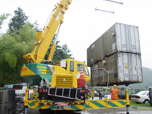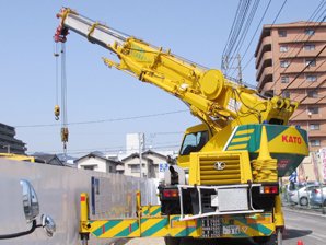 地盤の弱い場所での作業にレッカー転倒防止のための養生など